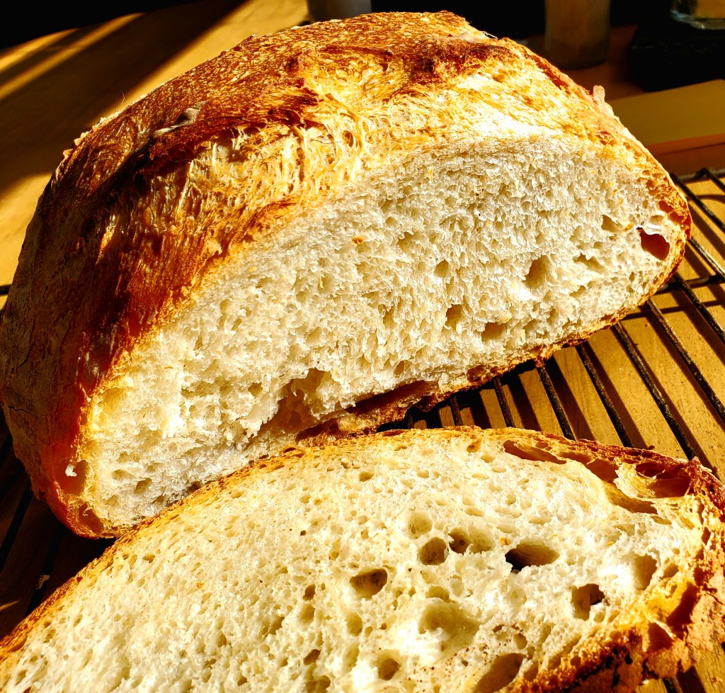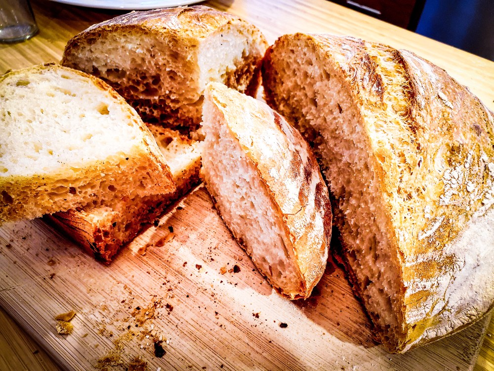 I’ve been having a lot of fun making great bread from Ken Forkish’s Flour Water Salt Yeast. While I’ve stuck mainly with boule loaves using his Overnight White Bread With Poolish recipe (some of which are pictured below), this week I used his recipe for making pizza dough.